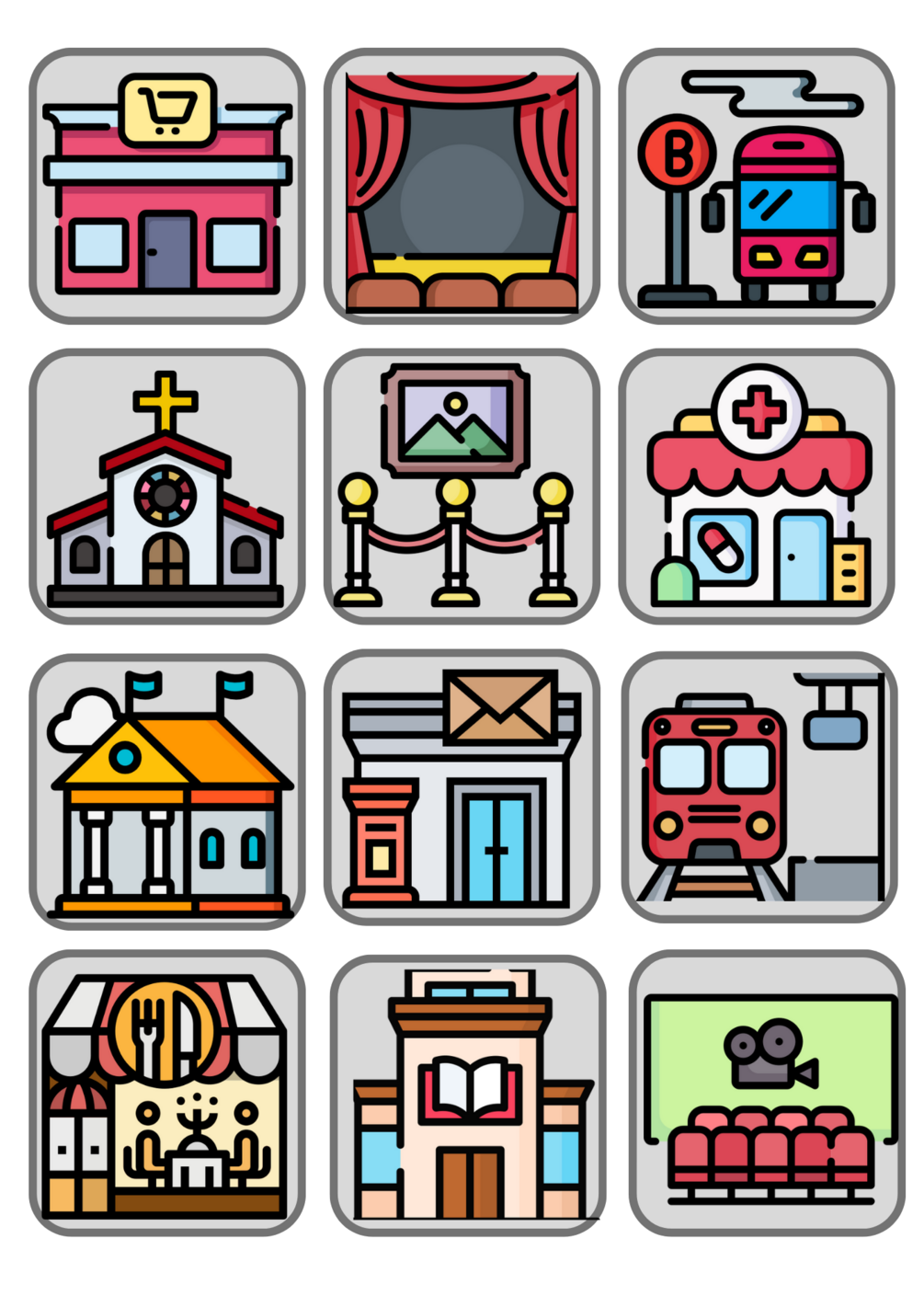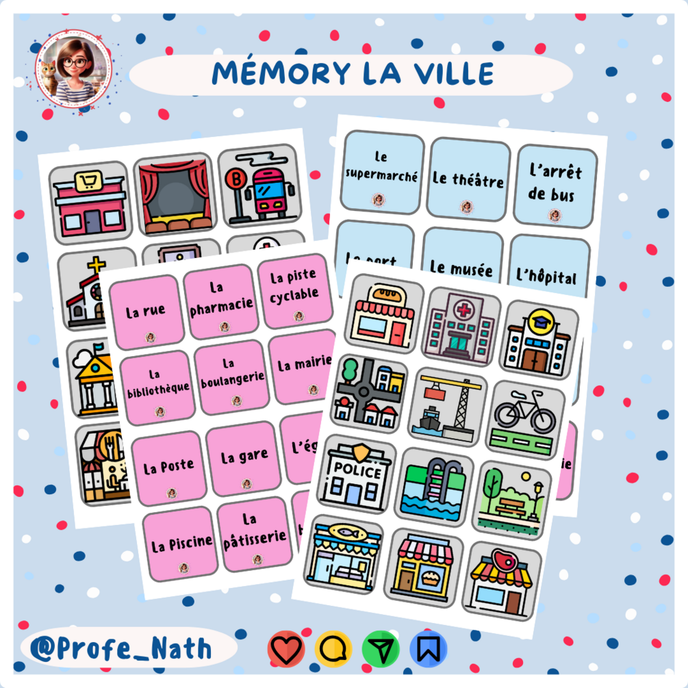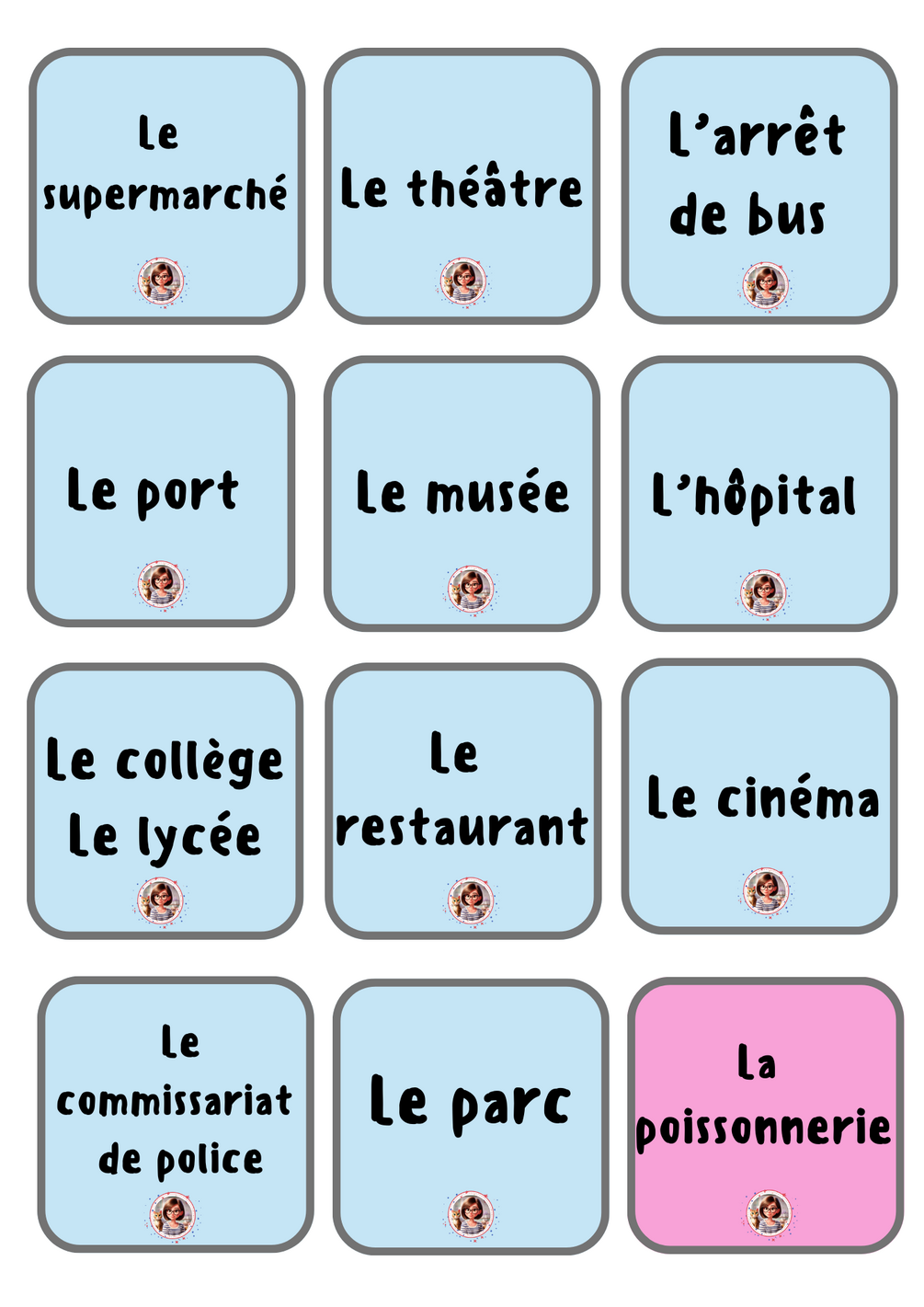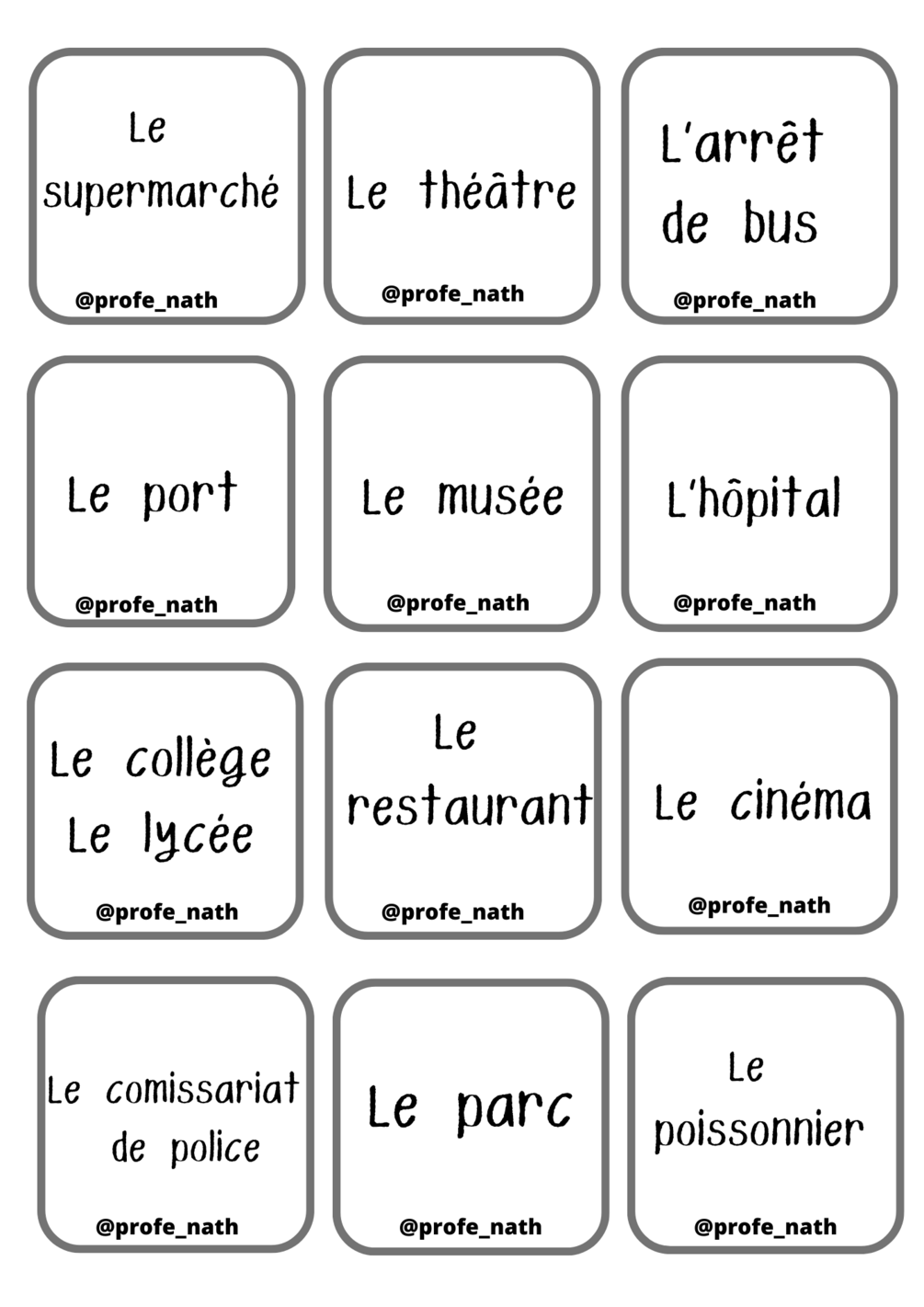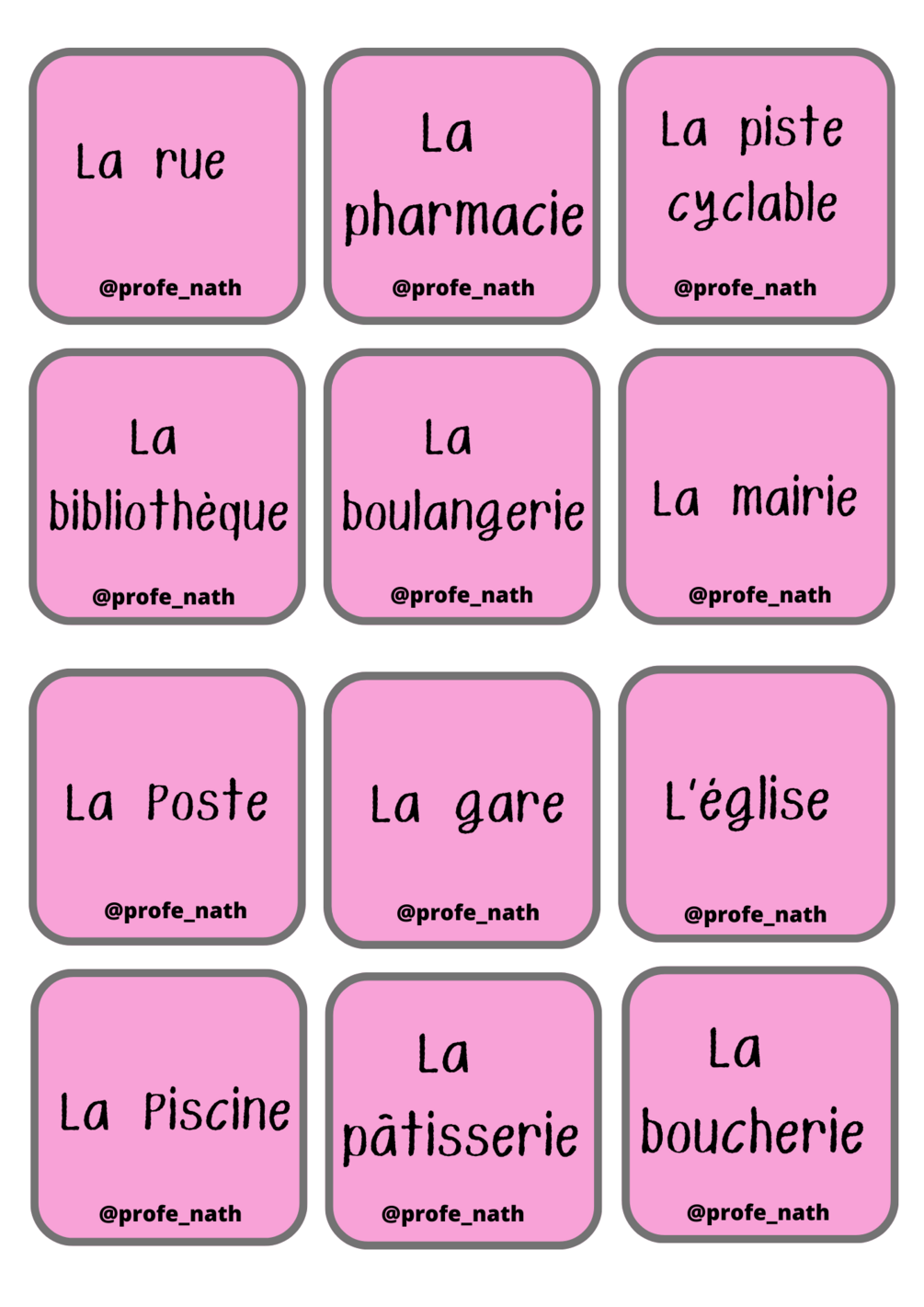 Juego de memoria con el vocabulario de "La ville". Pensado para 1ESO / 2ESO y primaria.
